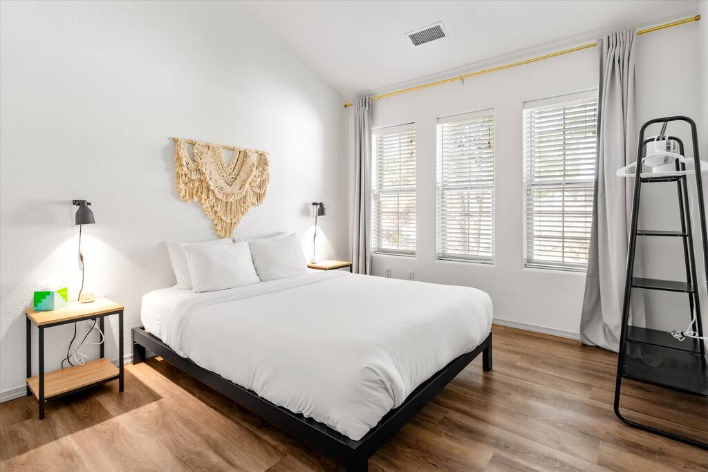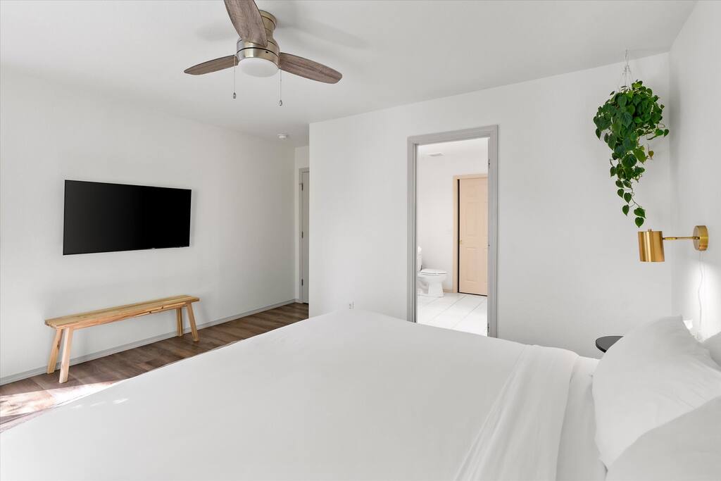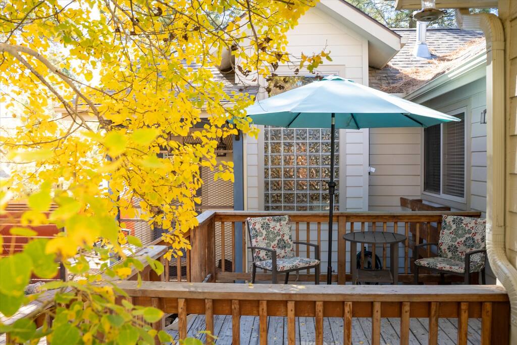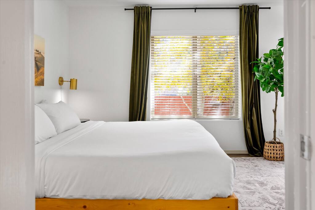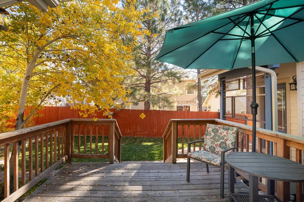The Ponderosa House is a cozy retreat with space to unwind, modern touches, and thoughtful amenities. It’s ideal for couples, small families, or remote workers wanting comfort close to town and trails. Highlights: • Spacious bedroom with high-end king mattress • Ensuite bath with soaking tub + walk-in shower • Fully stocked kitchen with filtered water + local coffee • Comfortable living room with smart TV + seasonal fireplace • Central A/C + fast Wi-Fi • Attached garage + private fenced yard • Full laundry room Layout Notes: • One bathroom, accessed through the bedroom – may not suit all group setups • Home shares one wall with a separate guesthouse (also a rental) • Guesthouse has its own private walkway/entrance, visible from the back porch but does not enter via shared spaces License: STR-014356 TPT: 21444173