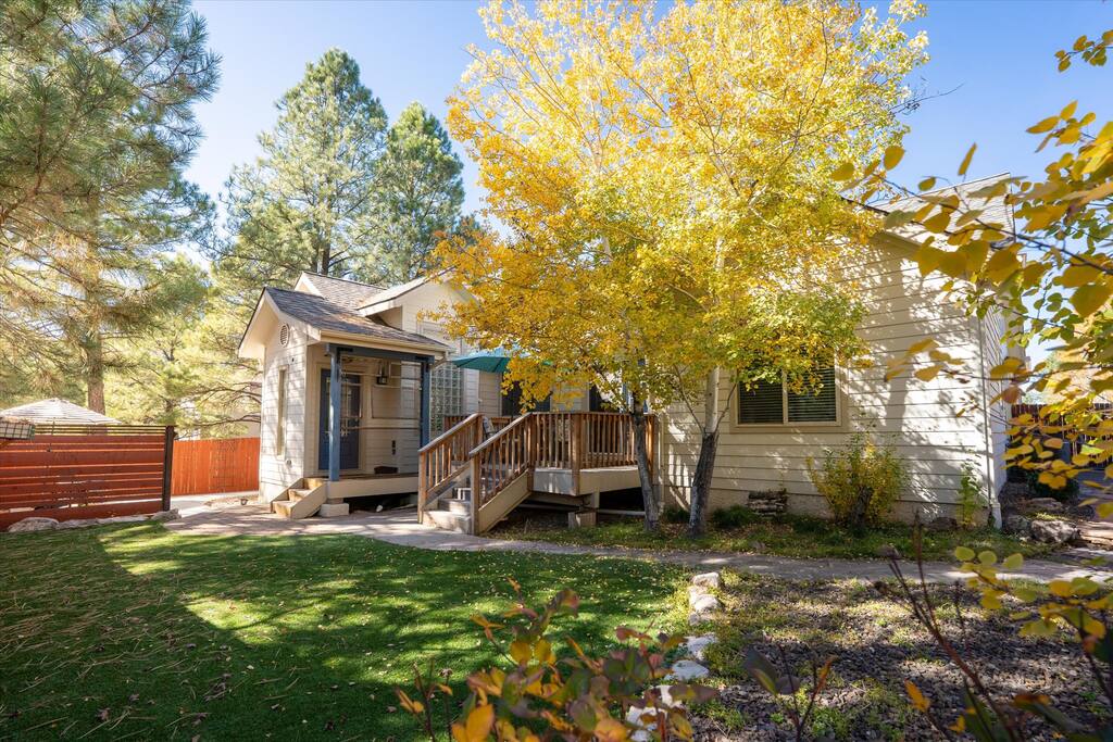 This peaceful, modern home is tucked in a quiet Flagstaff neighborhood just minutes from downtown. Designed for comfort and convenience, it features an open layout, fenced yard, garage parking, and ensuite bath with soaking tub and walk-in shower. Note: home shares a wall with a private guesthouse (also a rental) with its own entrance and no shared spaces.